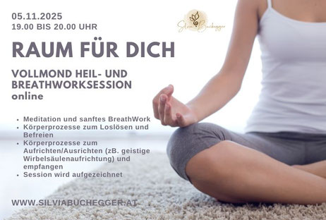 Tauche mit mir ein die magische Kraft des Vollmondes um loszulassen, was dir nicht mehr dienlich ist um so Raum zu schaffen für Heilenergie. Raum für dich, Menschen, der du bist. Kraftvolle Atemtechniken unterstützen dich dabei frei zu werden.